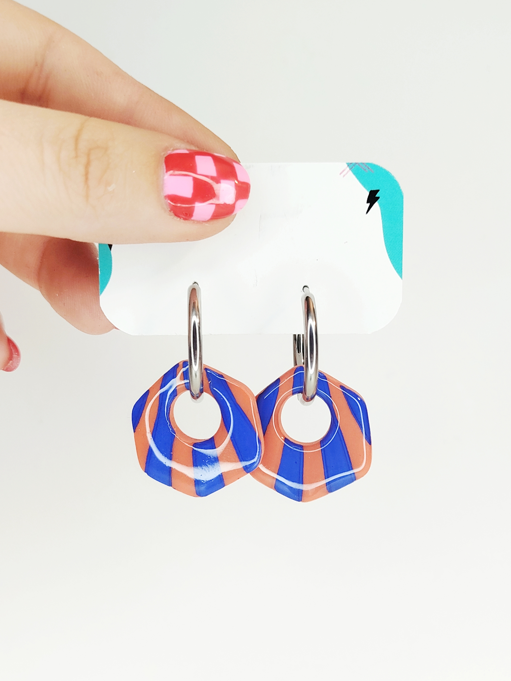 Los Pendientes de aro Huracán son pendientes únicos y las piezas están pintadas a mano.
